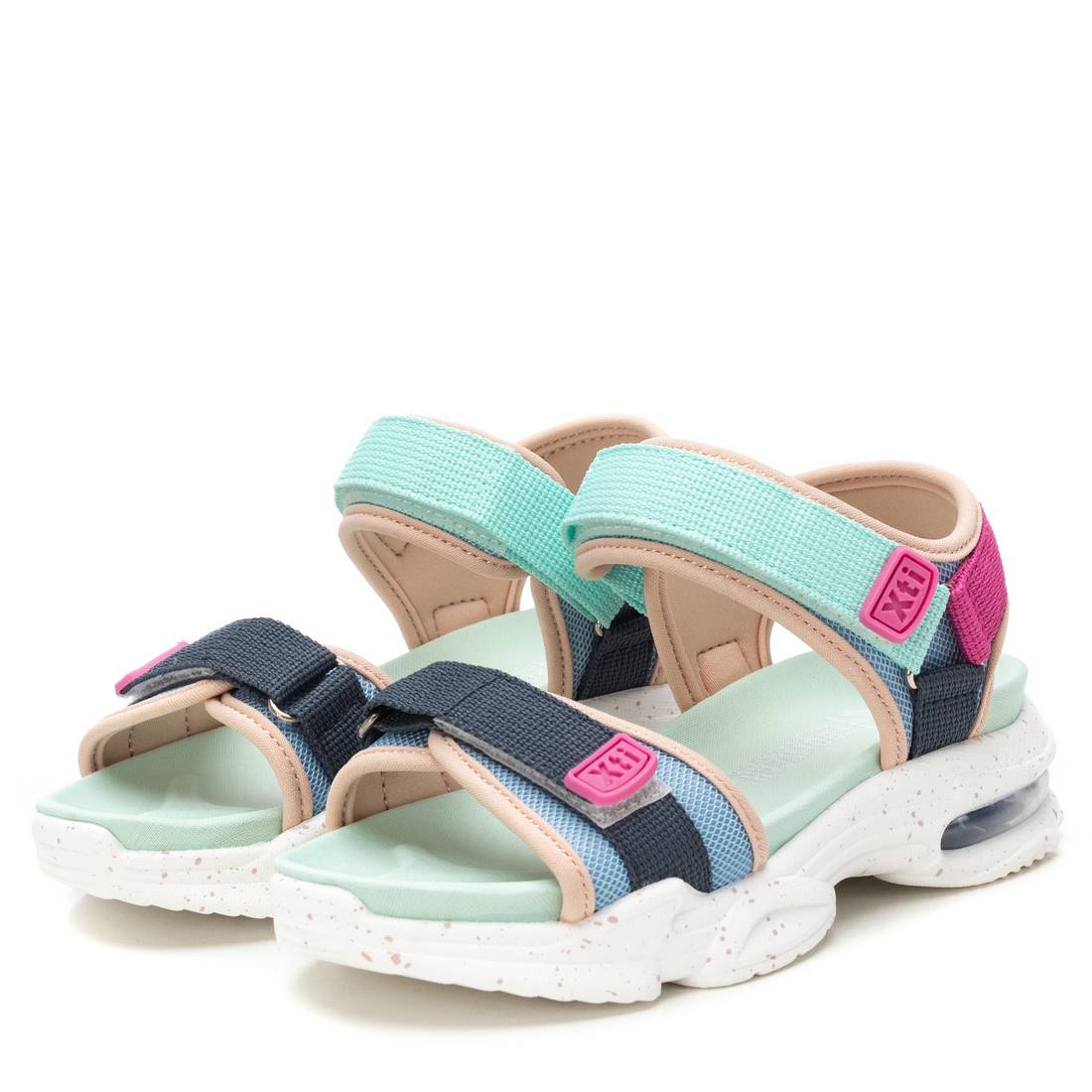 Sandals for girls, Xti Kids brand. Made of textile material. Straps that adjust the ankle by means of self-adherent straps. Thick non-slip rubber sole with inner tube, ideal for the best adventures of this new season. This model has been certified vegan by the worldwide organisation PETA (Animal Rights Organisation).