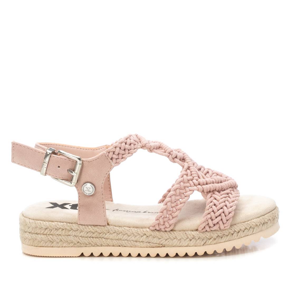 Girl's sandal, Xti Kids brand. Made in textile material, crochet type. Bracelet with material that imitates leather with metallic buckle at the ankle for better fastening. Jute wedge with non-slip rubber sole. Ideal for summery looks. This model has been certified vegan by the worldwide organisation PETA (Animal Rights Organisation).