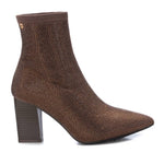 Ankle boots for women, Xti brand. Made of suede with decorative crystals fantasy. Elastic material that favors the fit and good fit to the leg. Pointed toe and wide heel of 8 cm. Non-slip sole. This model has been certified vegan by the worldwide organisation PETA (animal rights organisation).