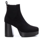 Women's chelsea ankle boots from Xti. Made in suede. Side zip fastening. Rear puller to facilitate the putting on. Wide heel of 10 cm with front platform of 3 cm for comfort. Non-slip sole. This model has been certified vegan by the worldwide organisation PETA (animal rights organisation).