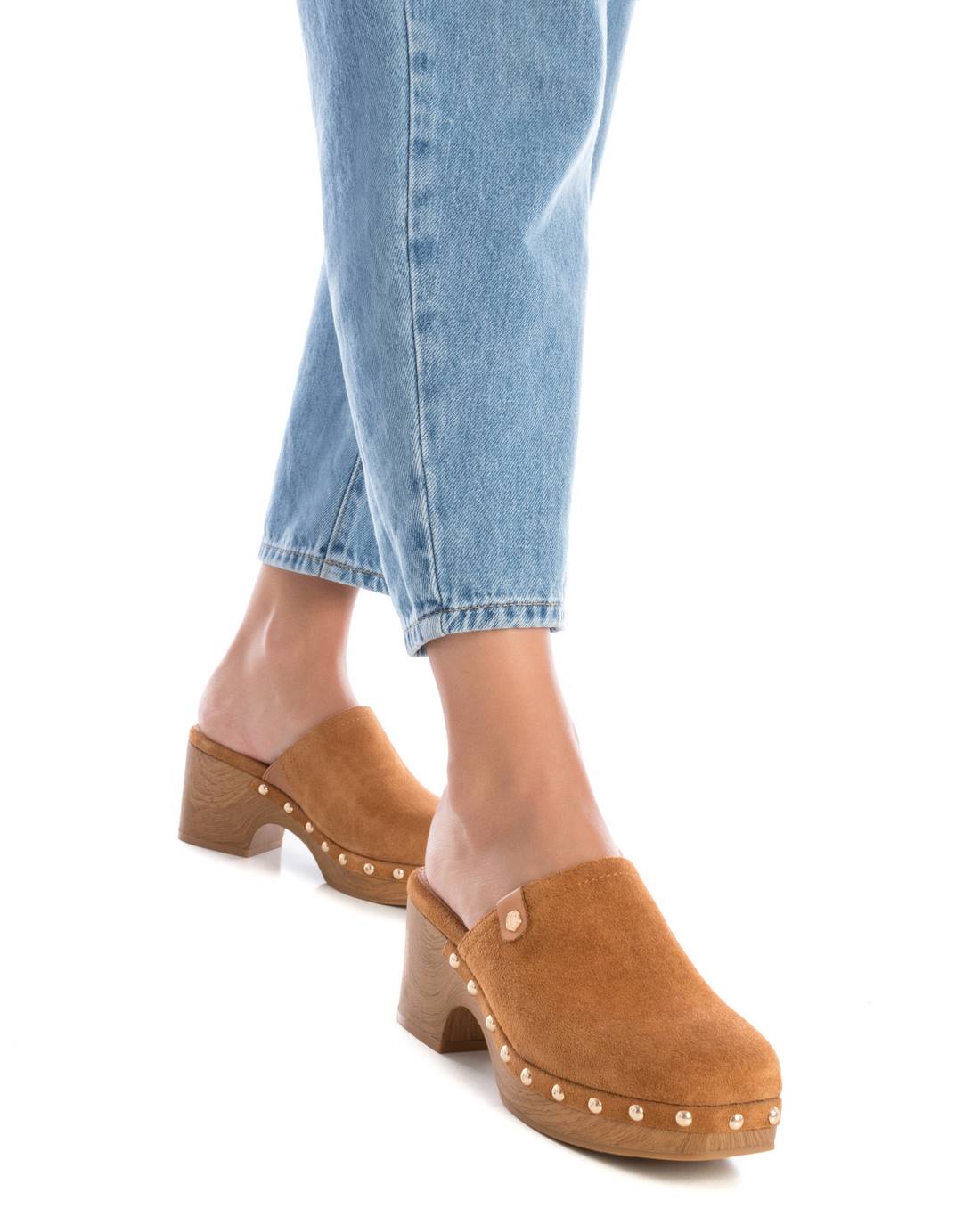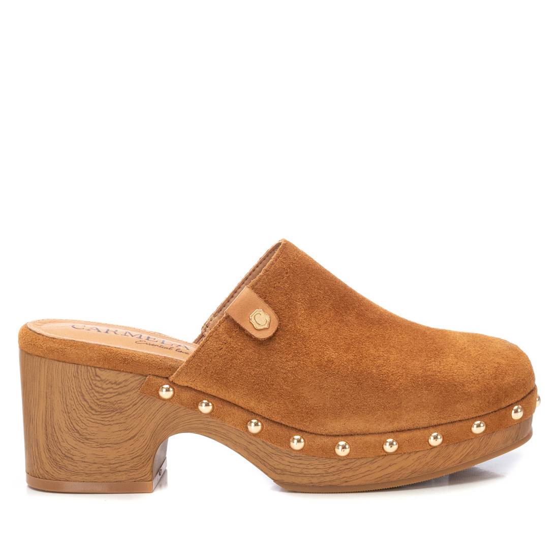 Carmela women's shoes. Made in high quality split leather. Join the trend of clogs with this timeless model. Decorative studs on the side. Wide heel of 7 cm with front platform for comfort. Non-slip sole.