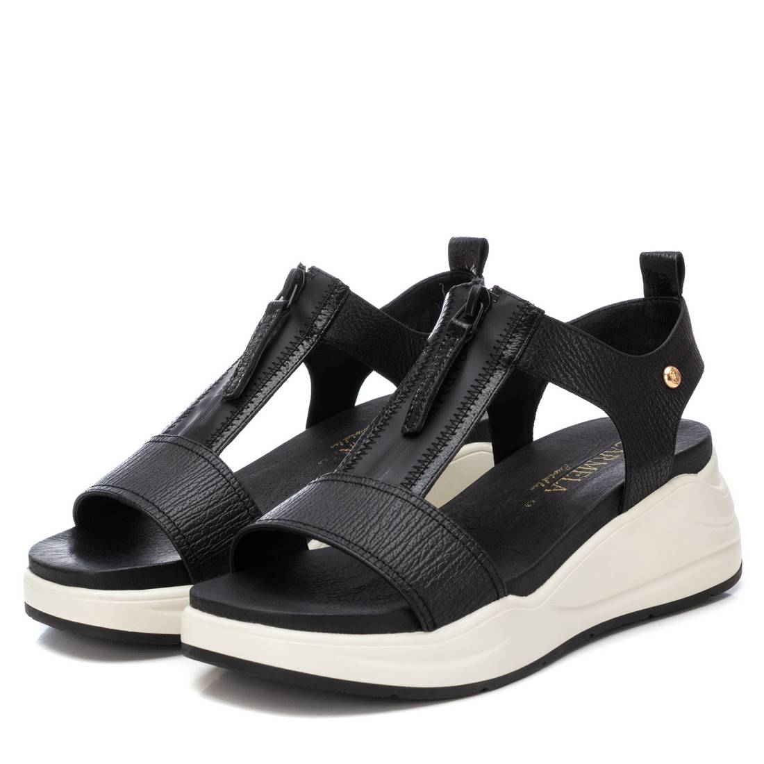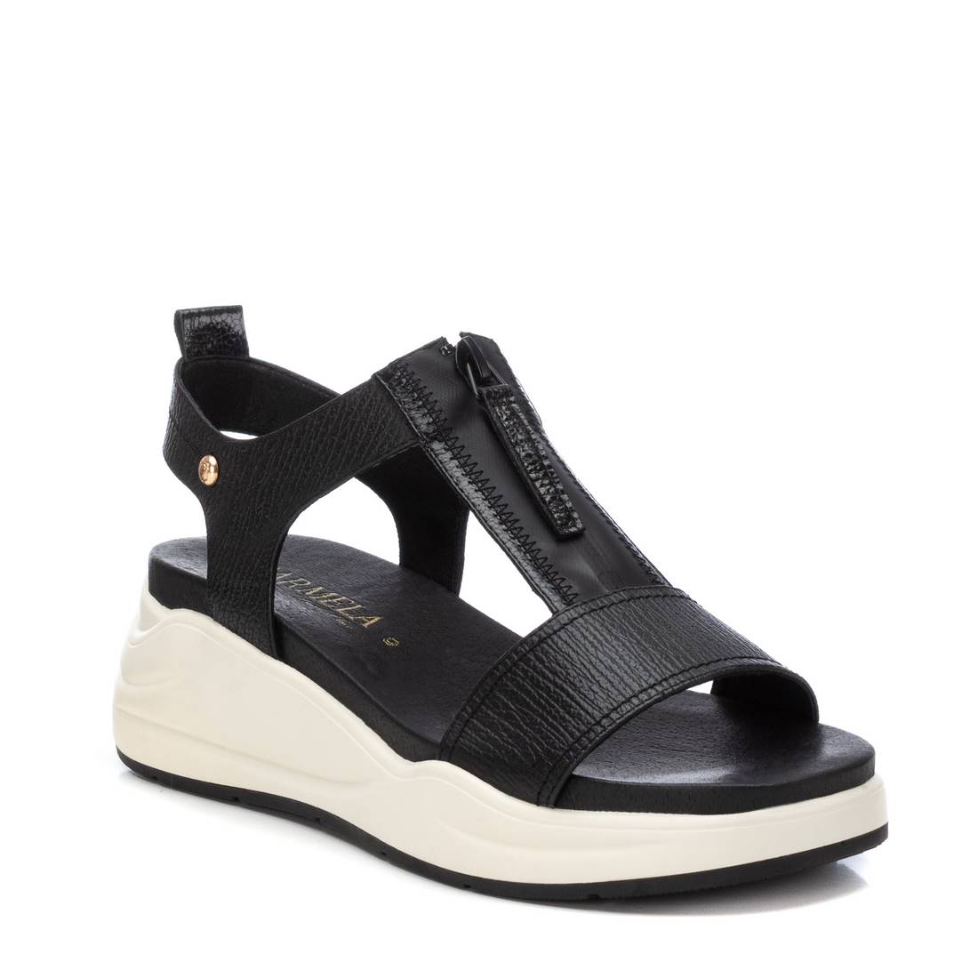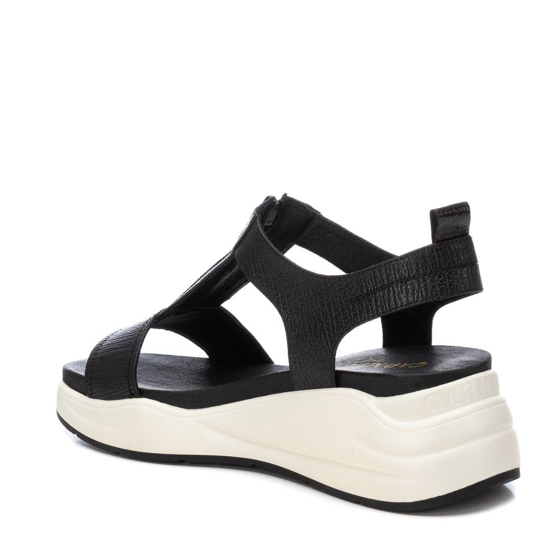 Women's sandals by Carmela. Made of high quality leather. T design with front zip closure. Comfortable non-slip rubber sole.