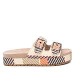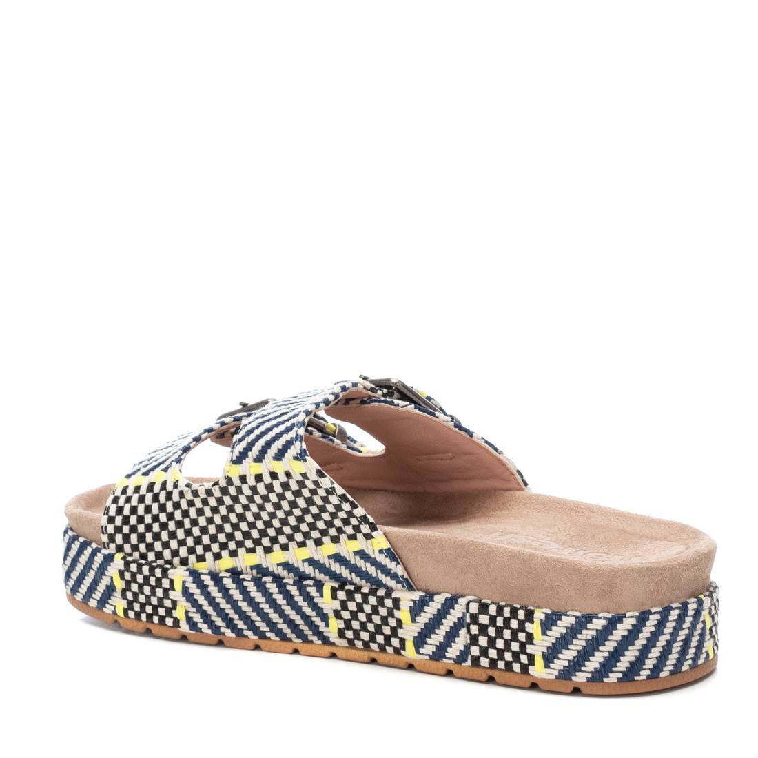 Women's sandals by Refresh. Made in raffia with decorative motif. Platform lined in the same material. Design with two functional buckles for a good fit. Comfortable padded insole and non-slip rubber sole. This model has been certified vegan by the worldwide organisation PETA (Animal Rights Organisation).