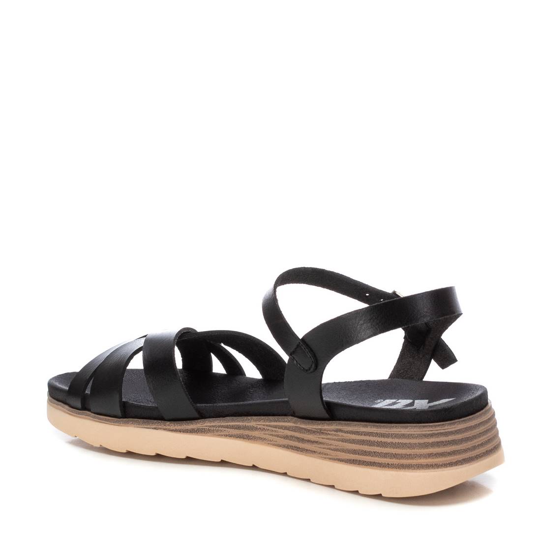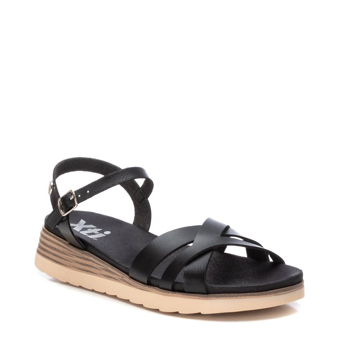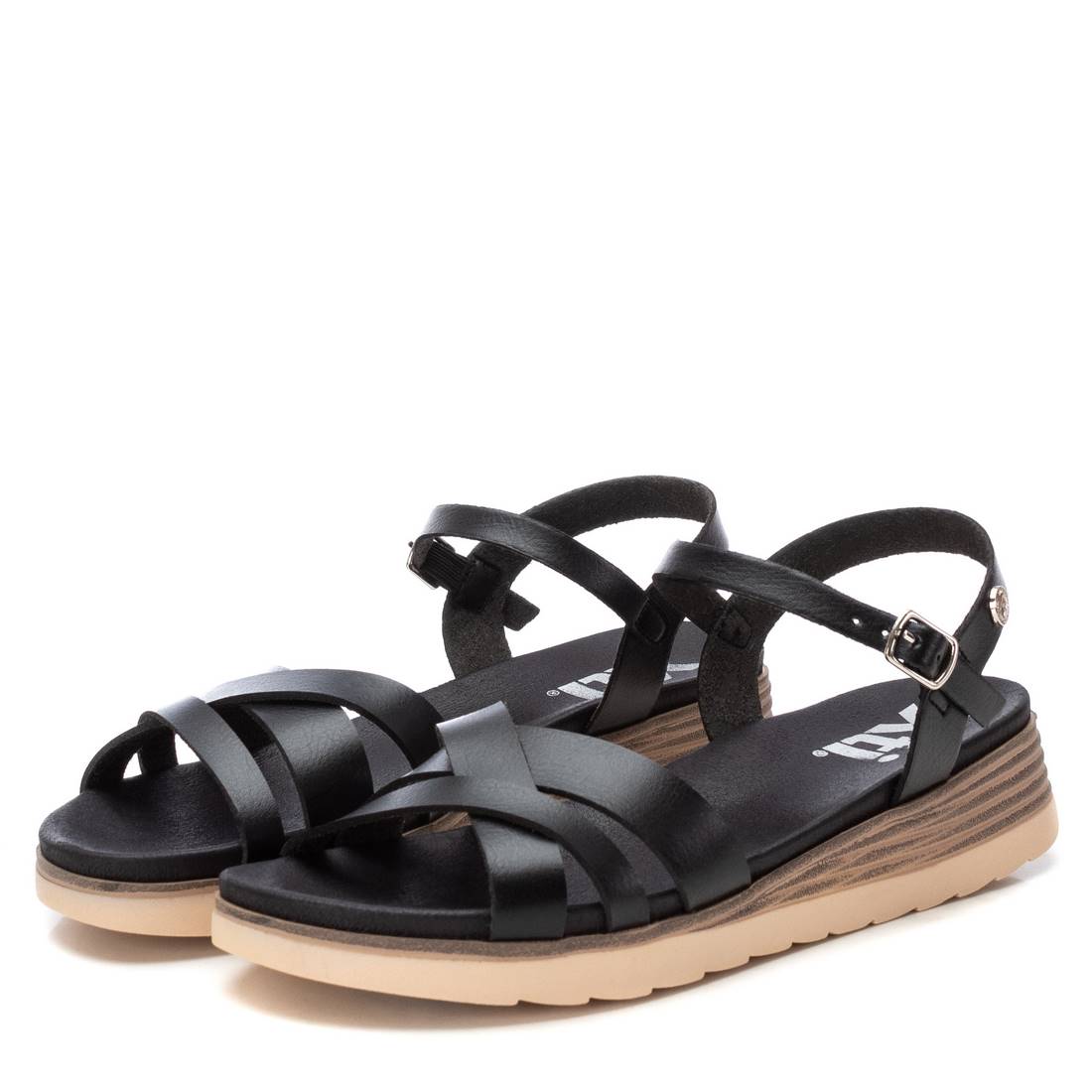 Women's sandals from Xti. Made of material that imitates leather with metallic finish. Intertwined straps design and ankle strap with metal buckle. Small wedge of 4 cm with non-slip sole. This model has been certified vegan by the worldwide organisation PETA (animal rights organisation).