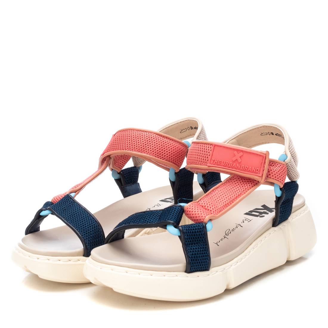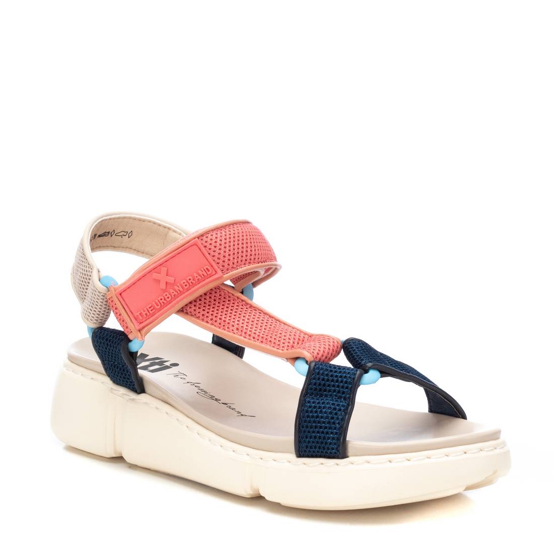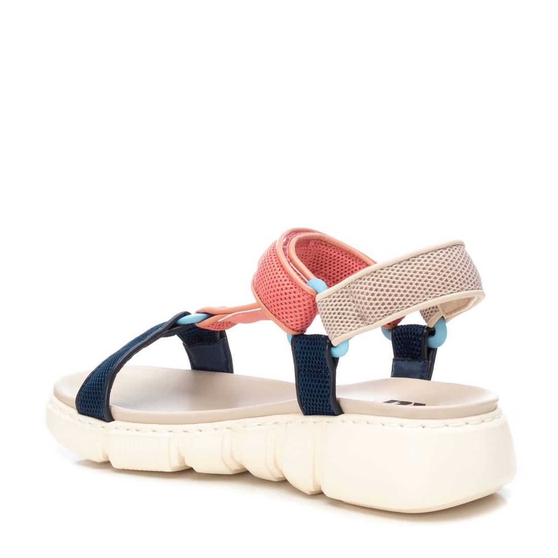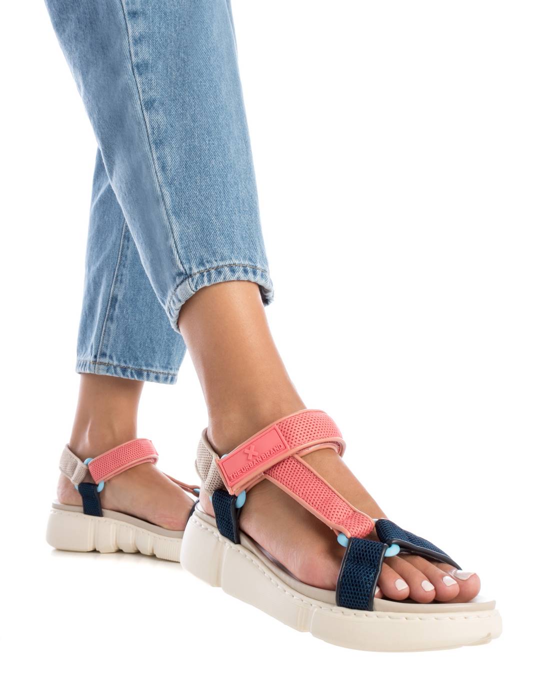 Women's sandals, Xti brand. Made of textile material. Closing by means of adherent straps. Non-slip rubber sole. This model has been certified vegan by the worldwide organisation PETA (Animal Rights Organisation).