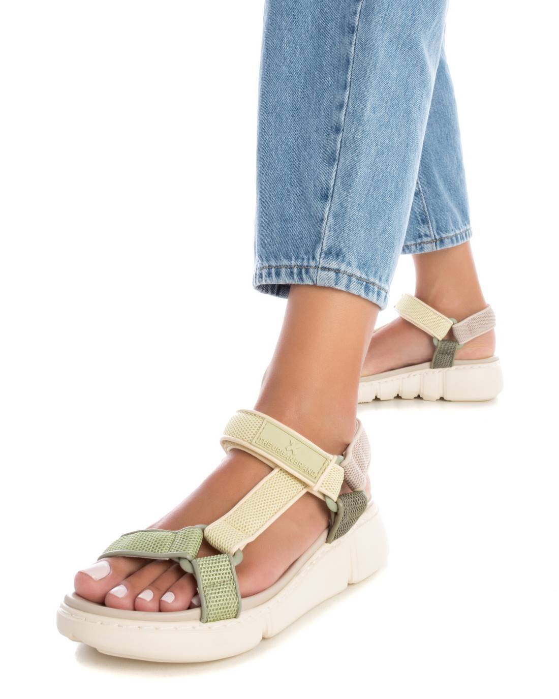 Women's sandals, Xti brand. Made of textile material. Closing by means of adherent straps. Non-slip rubber sole. This model has been certified vegan by the worldwide organisation PETA (Animal Rights Organisation).