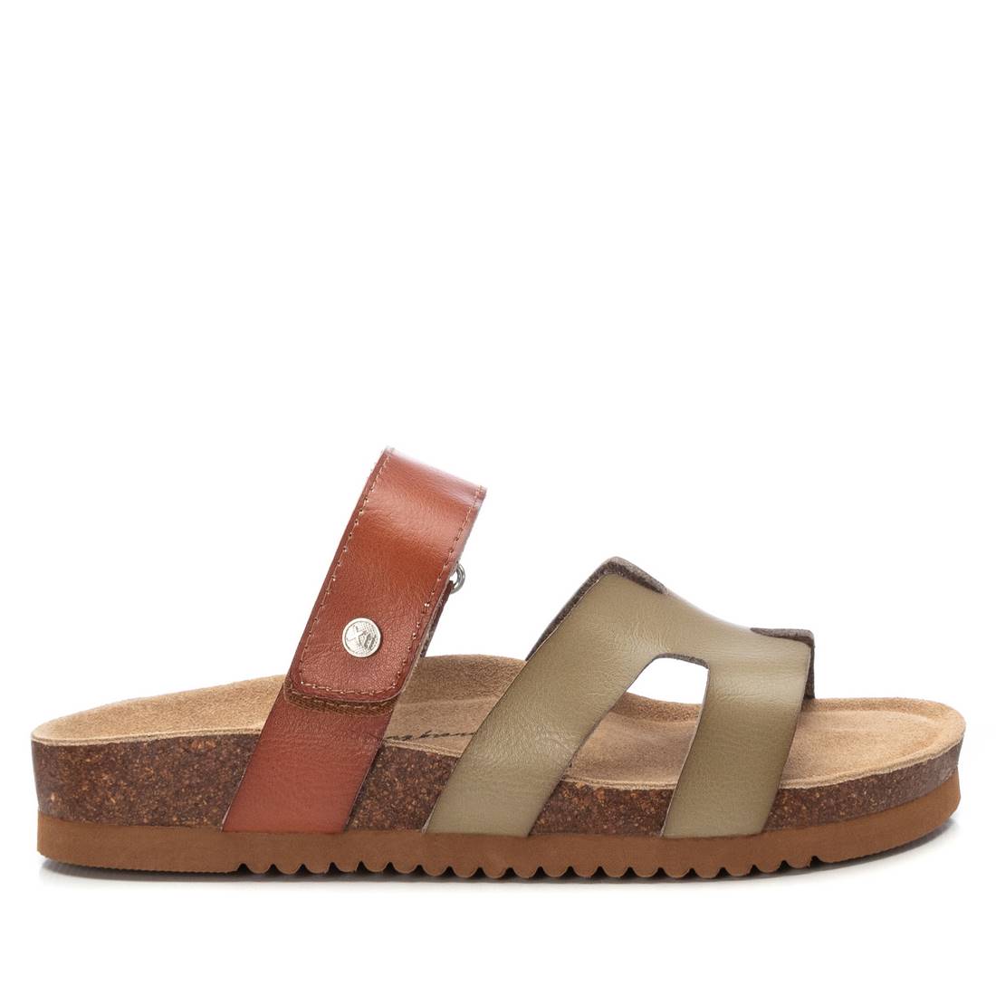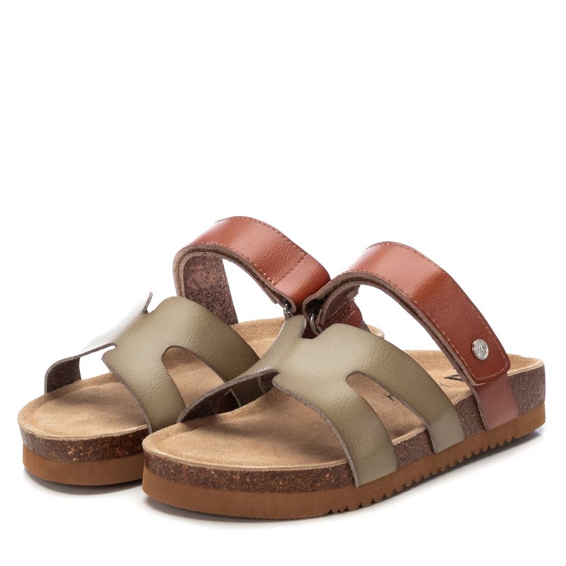 Xti women's sandals. Made in material that imitates leather. Bio sole, super comfortable to wear all day. Design of wide shovel and shovel with hook-and-loop fastener for easy adjustment. Non-slip rubber sole.
