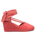 Shoe with 8cm wedge brand Refresh. Made of textile material. Ankle straps for a summery look. Non-slip rubber sole. This model has obtained the vegan certificate by the global organization PETA (Animal Rights Organization).