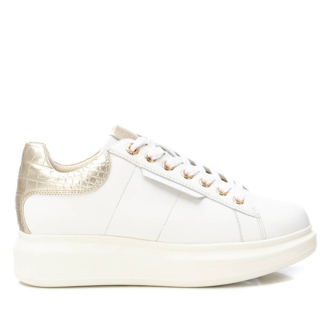 Women's trainers, Carmela brand. Made in high quality leather. With metallic details on the back crocodile effect. Combination of colour and simple but elegant leather. Non-slip rubber sole.