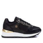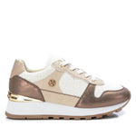 Women's trainers from Xti. Made of material that imitates leather combined with shiny textile. Adjustable laces. This model will give a sophisticated touch to your looks without losing comfort with its non-slip rubber sole. This model has obtained the vegan certificate by the worldwide organization PETA (Animal Rights Organization).