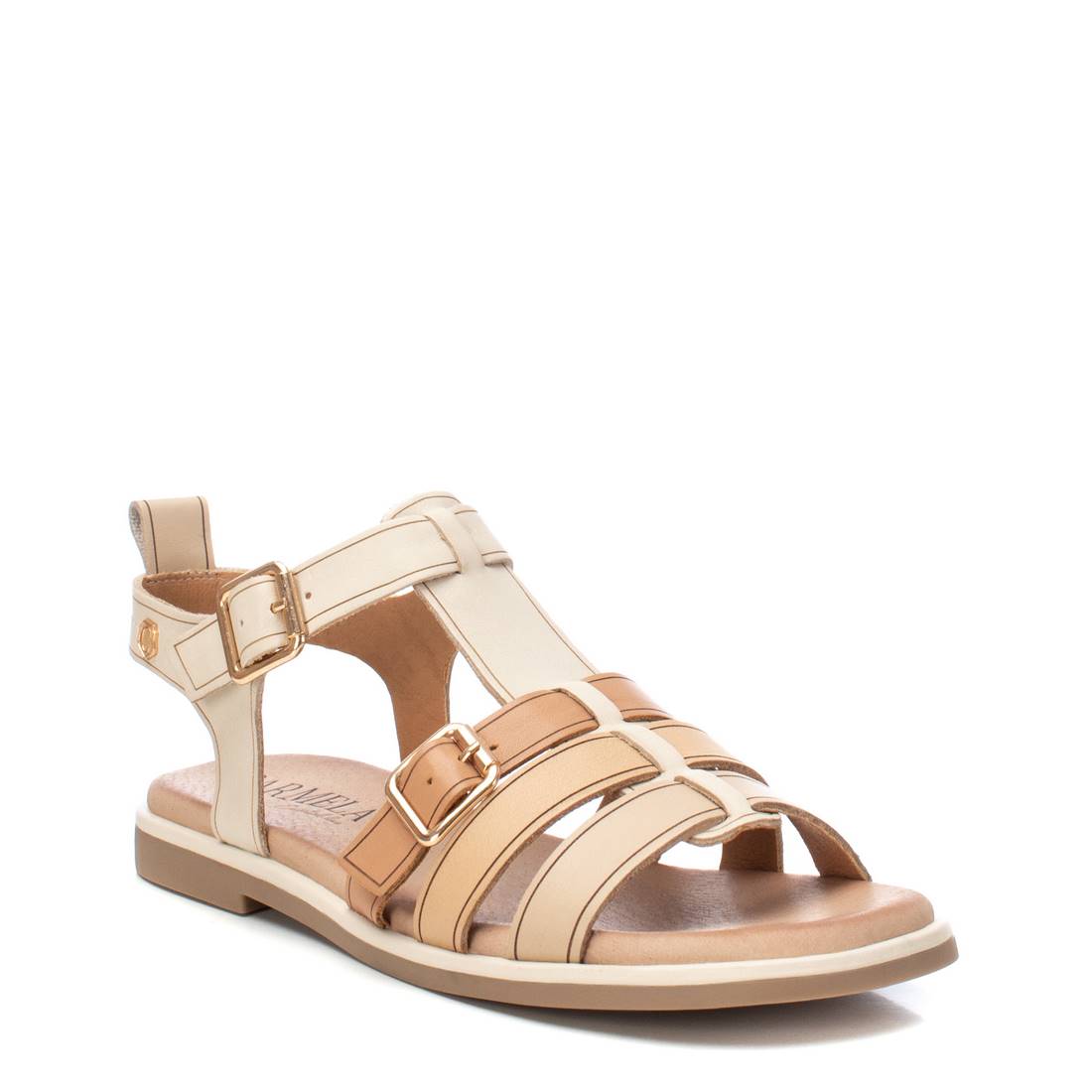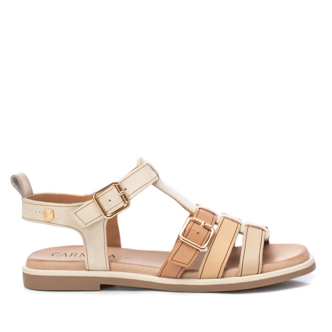 Women's sandals by Carmela. Made of high quality leather. Model with straps and decorative metal buckle on the front. Closing by strap with buckle at the ankle. Non-slip sole.