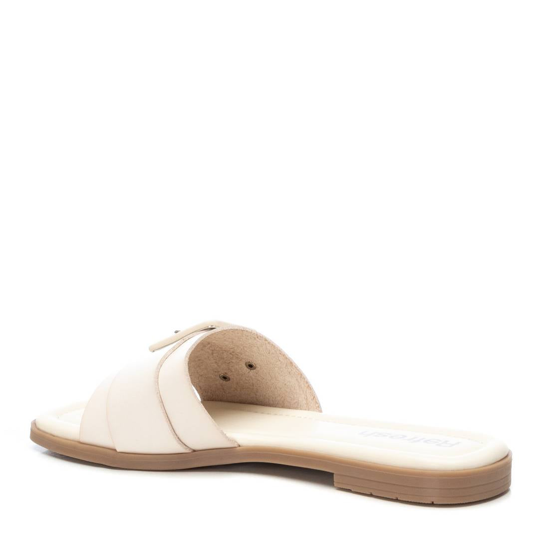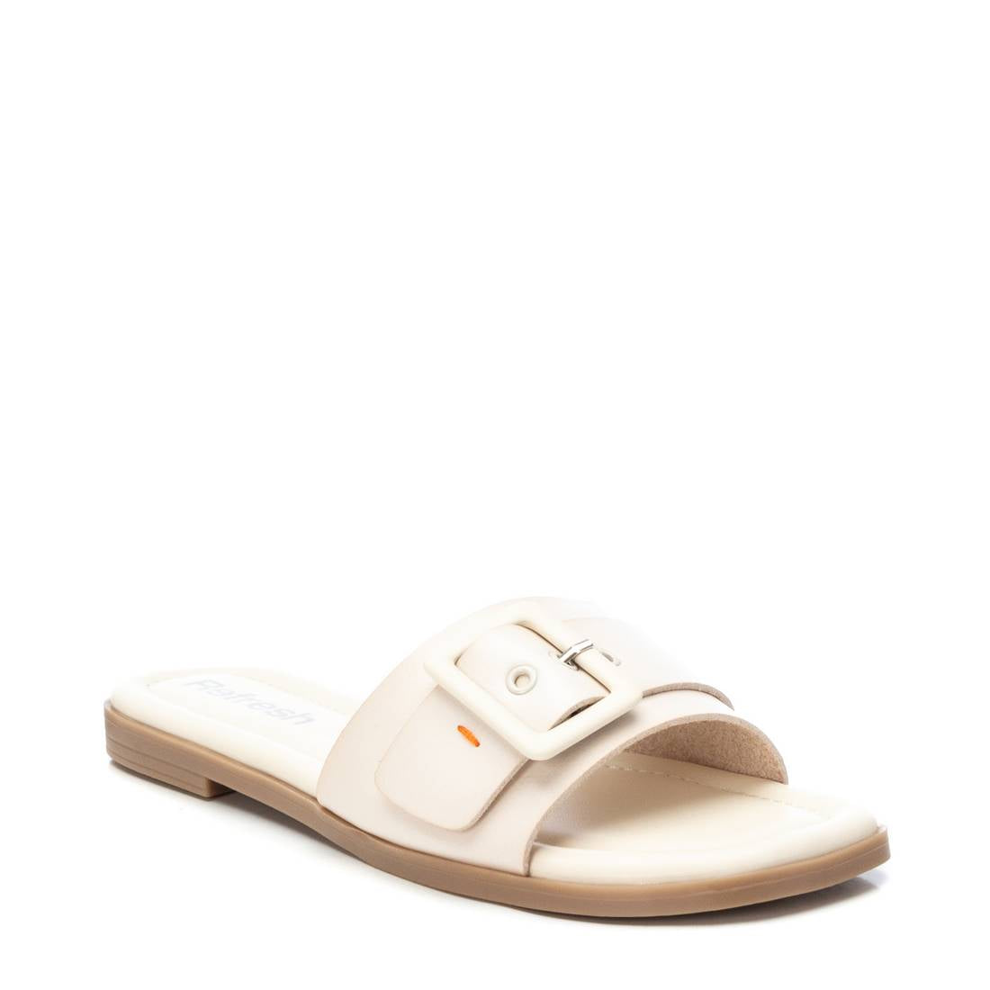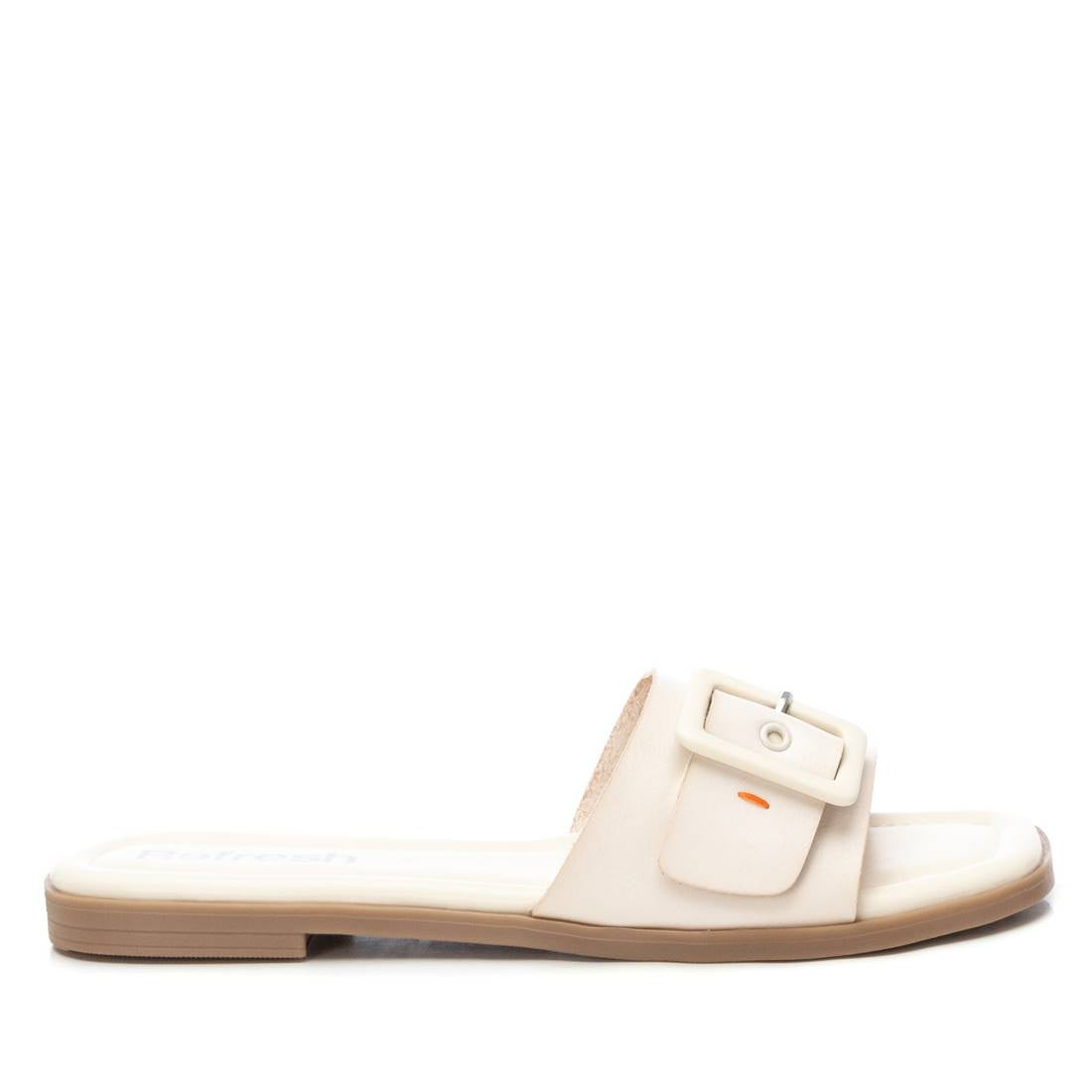 Women's sandals by Refresh. Made of material that imitates leather. Model shovel type with decorative buckle. Cushioned sole and flexible non-slip rubber sole. This model has been certified vegan by the worldwide organisation PETA (Animal Rights Organisation).