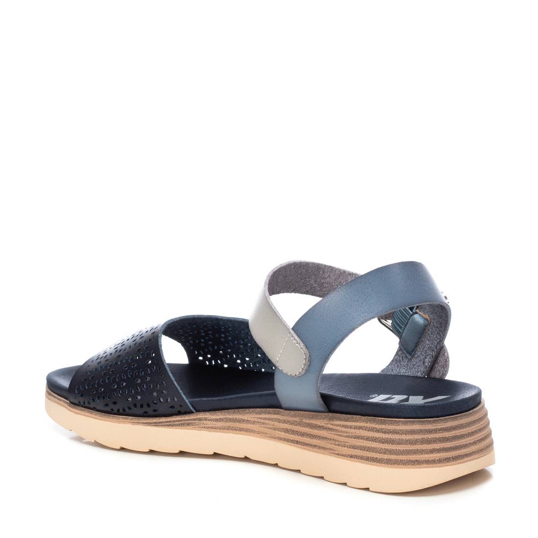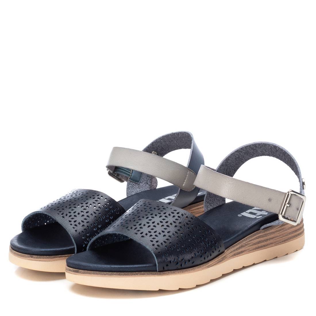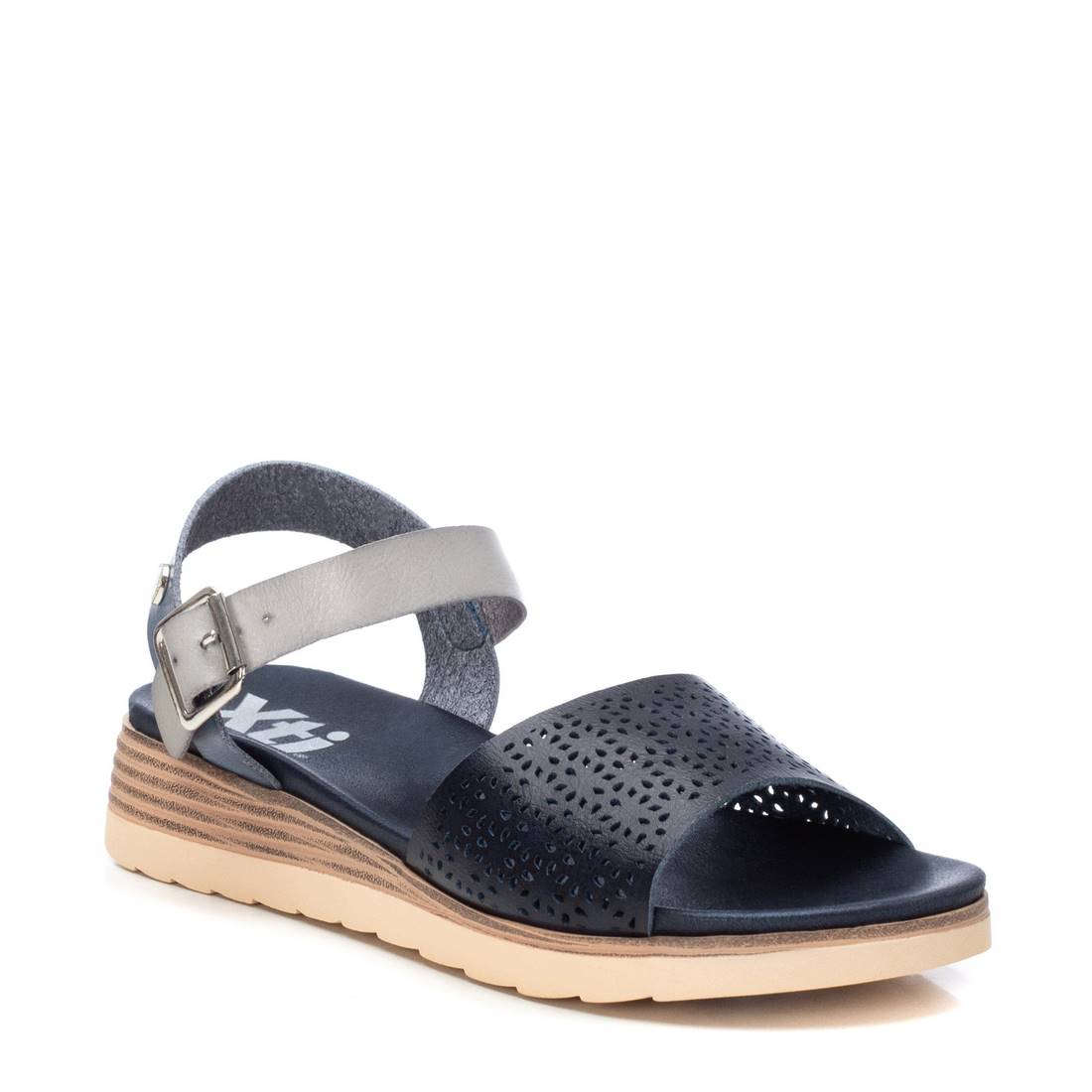 Xti women's sandals. Made in material that imitates leather with decorative die-cutting. Closing with a buckle bracelet. Padded sole with 4 cm high platform, wood effect and channelled non-slip rubber sole. This model has been certified vegan by the worldwide organisation PETA (animal rights organisation).