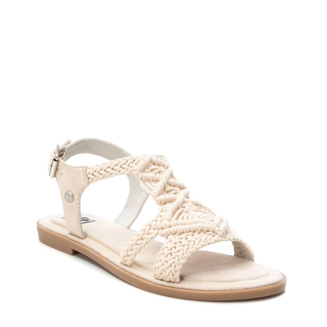 Women's sandals by Xti. Made in macramé style fabric. Rear bracelet made of material that imitates leather with buckle on the side to fasten to the ankle. Non-slip rubber sole. This model has been certified vegan by the worldwide organisation PETA (Animal Rights Organisation).