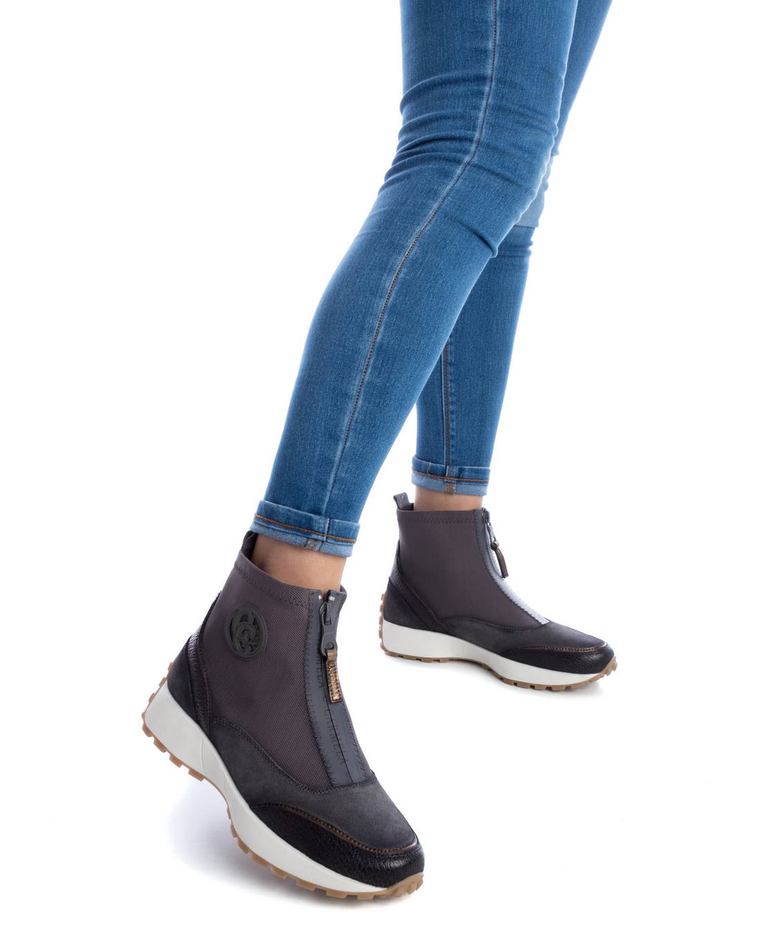 Botín deportivo de mujer, de la marca Carmela. Fabricado en textil y piel de alta calidad. Cierre mediante cremallera delantera. Caña elástica y tirador trasero para facilitar la puesta. Suela dentada de goma antideslizante.