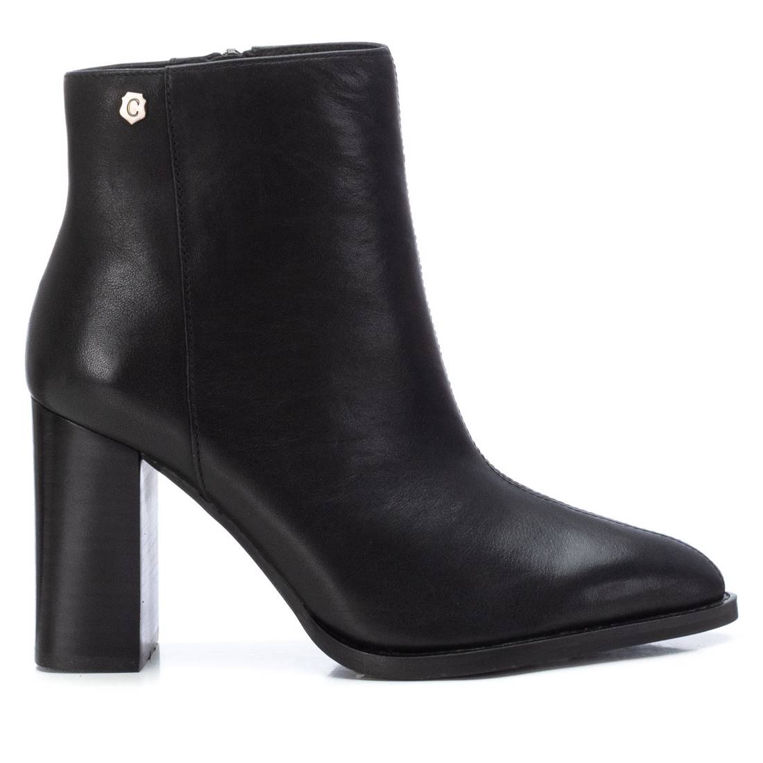 Botín de mujer, de la marca Carmela. Fabricado en piel de alta calidad. Cierre mediante cremallera lateral. Elegante punta afilada y tacón ancho de 8 cm. Suela antideslizante. Un modelo sencillo y elegante ideal como fondo de armario.