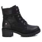 Botín estilo militar de mujer, de la marca Refresh. Fabricado en material que imita la piel. Cremallera lateral y tirador trasero para facilitar la puesta. Ajusta los cordones alrededor del tobillo para darle un toque diferente y en tendencia. Tacón de 5 cm con suela dentada de goma antideslizante. Ideales para un look casual. Este modelo ha obtenido el certificado vegano por la organización mundial PETA (Organización de los derechos de los animales).
