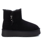 Botín de mujer, de la marca Xti. Fabricado en suave antelina con forro de pelito. Cremallera lateral decorativa. Un modelo en tendencia perfecto para los días más fríos, tanto en casa como en la calle. Doble piso con suela antideslizante. Este modelo ha obtenido el certificado vegano por la organización mundial PETA (Organización de los derechos de los animales).