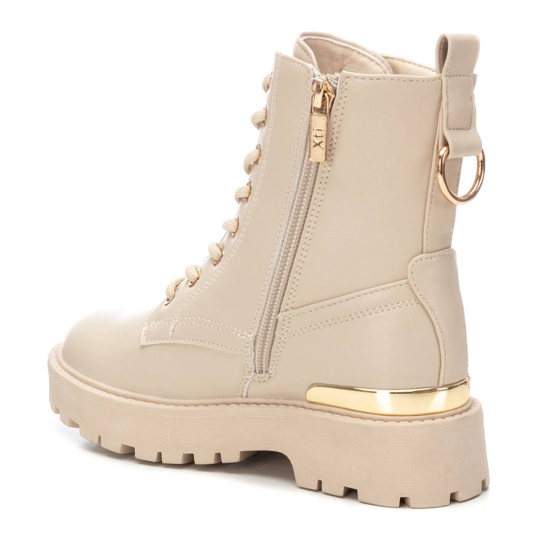 Botín de niña, de la marca Xti Kids. Fabricado en material que imita a la piel. Cierre mediante cremallera interior. Cordones regulables para un mejor ajuste. Gruesa suela rallada de goma antideslizante. Este modelo ha obtenido el certificado vegano por la organización mundial PETA (Organización de los derechos de los animales).