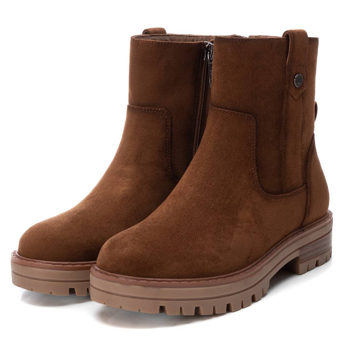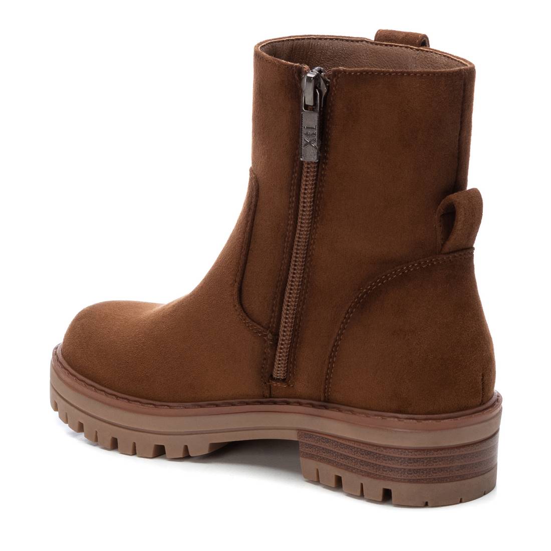 Botín de niña, de la marca Xti Kids. Fabricado en antelina. Cierre mediante cremallera lateral. Suela gruesa de 4 cm de goma antideslizante. Este modelo ha obtenido el certificado vegano por la organización mundial PETA (Organización de los derechos de los animales).
