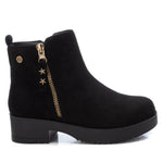 Botín de niña, de la marca Xti Kids. Fabricado en suave antelina. Cierre mediante cremallera interior con cremallera lateral decorativa. Tirador con estrellas decorativas. Gruesa suela de goma antideslizante. Este modelo ha obtenido el certificado vegano por la organización mundial PETA (Organización de los derechos de los animales).