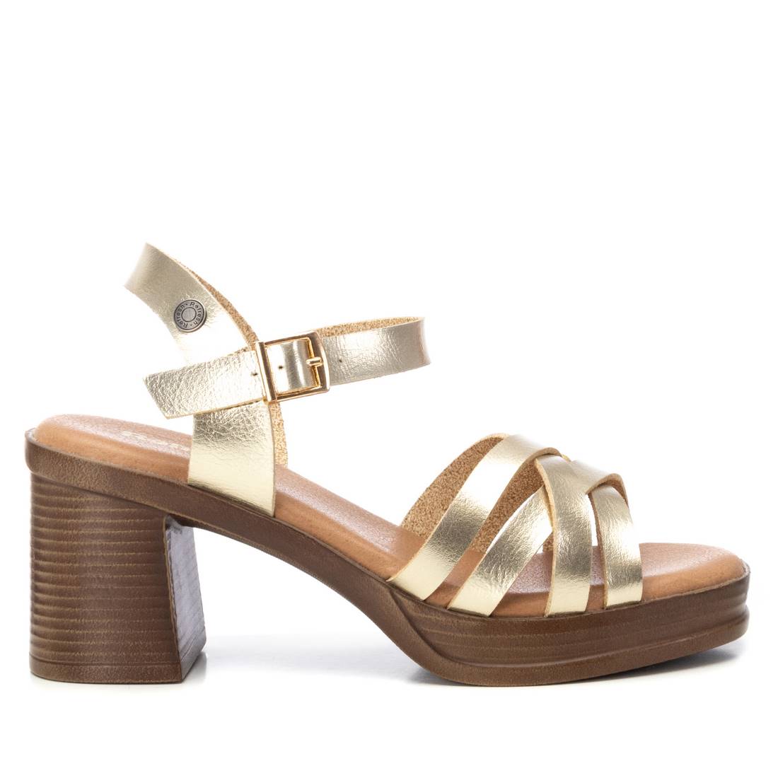 Sandalia de mujer, de la marca Refresh. Fabricada en material que imita a la piel. Pulsera trasera con tira al tobillo. Cierre de hebilla. Cómoda planta en antelina. Tacón ancho de 7 cm con plataforma para mayor comodidad. Este modelo ha obtenido el certificado vegano por la organización mundial PETA (Organización de los derechos de los animales).