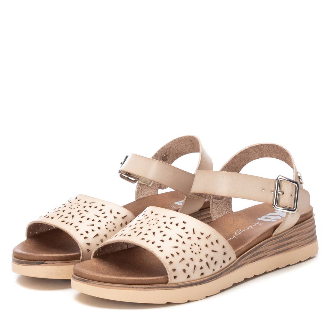 Sandalia de mujer, de la marca Xti. Fabricada en material que imita la piel. Diseño de pala con troquelado, ideal para complementar tus looks. Cierre con hebilla para facilitar el ajuste. Pequeña cuña de 4 cm y suela de goma antideslizante. Este modelo ha obtenido el certificado vegano por la organización mundial PETA (Organización de los derechos de los animales).