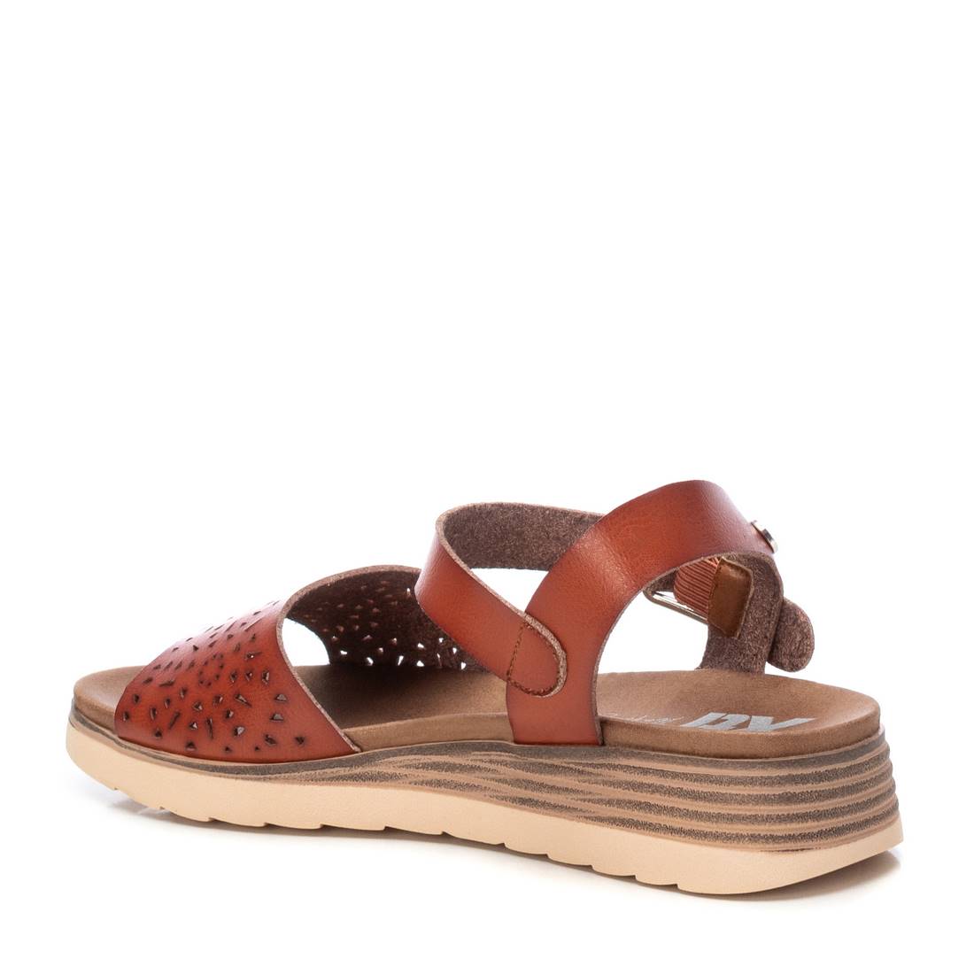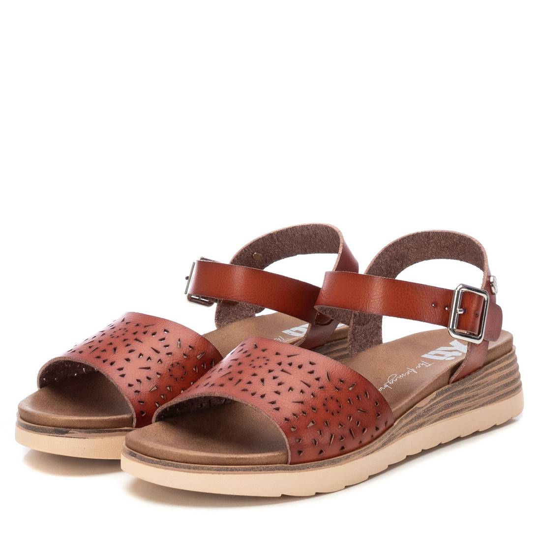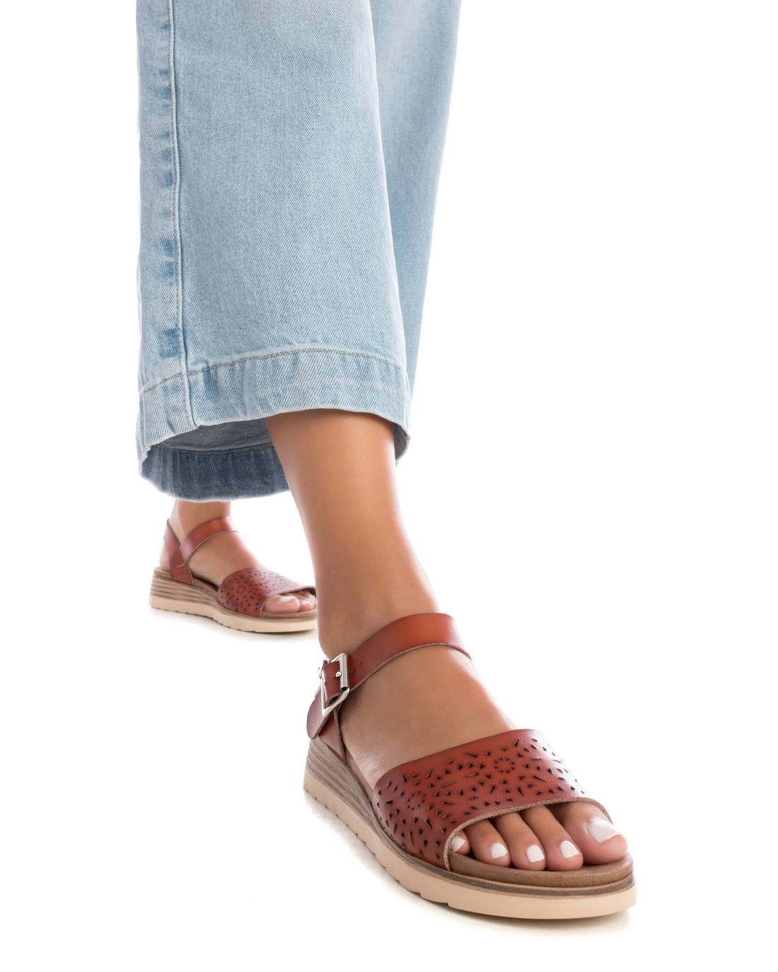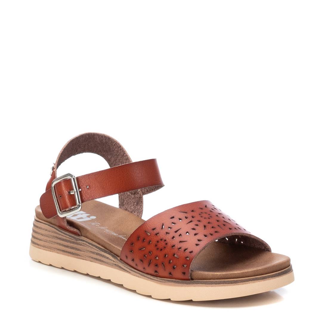 Sandalia de mujer, de la marca Xti. Fabricada en material que imita la piel. Diseño de pala con troquelado, ideal para complementar tus looks. Cierre con hebilla para facilitar el ajuste. Pequeña cuña de 4 cm y suela de goma antideslizante. Este modelo ha obtenido el certificado vegano por la organización mundial PETA (Organización de los derechos de los animales).