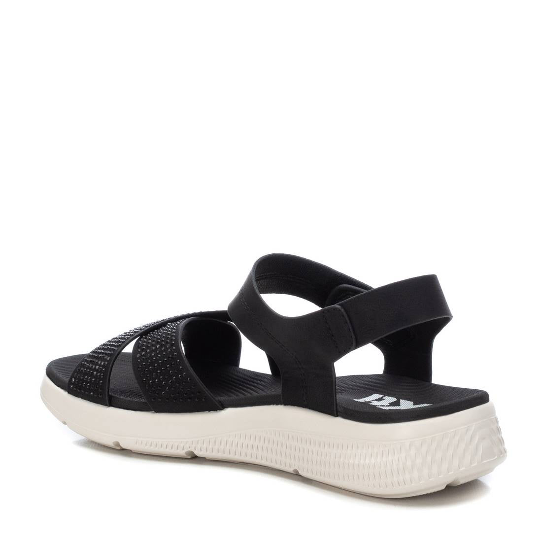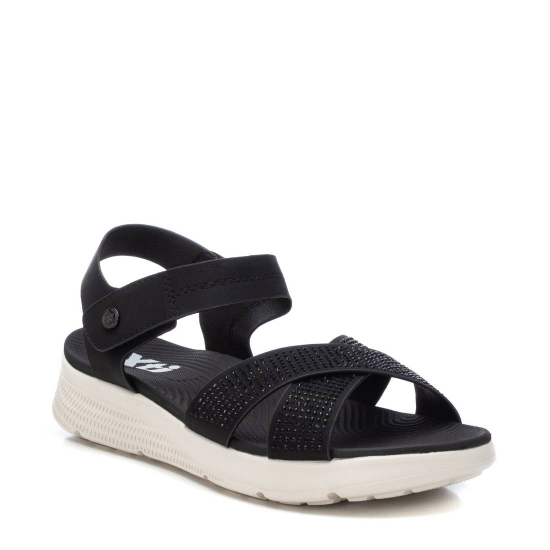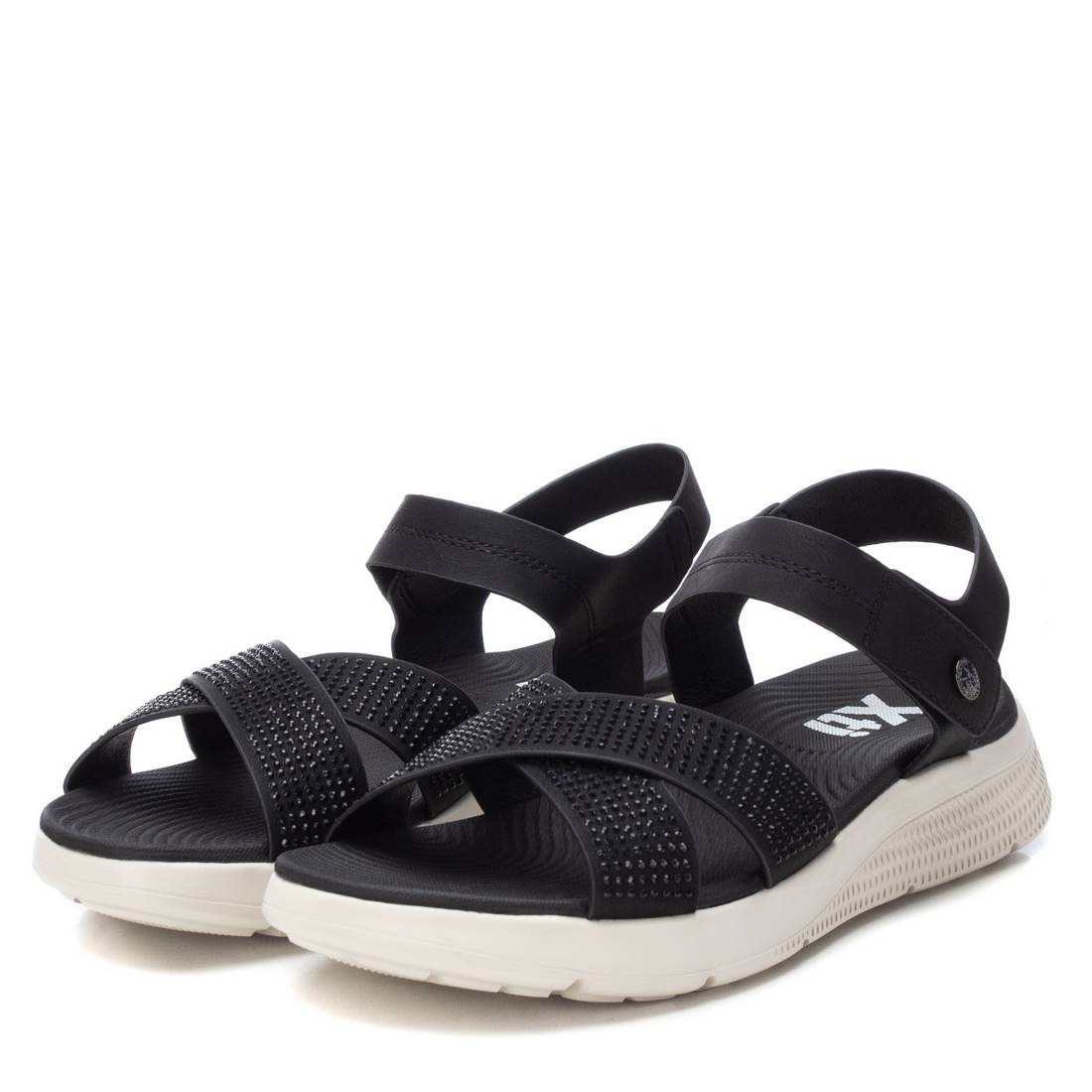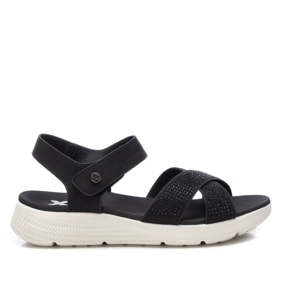Sandalia de mujer, de la marca Xti. Fabricada en material que de antelina con pedrería , de alta calidad. Diseño cruzado. Cierre mediante hebilla metálica para facilitar el ajuste. Suela de goma antideslizante. Este modelo ha obtenido el certificado vegano por la organización mundial PETA (Organización de los derechos de los animales).