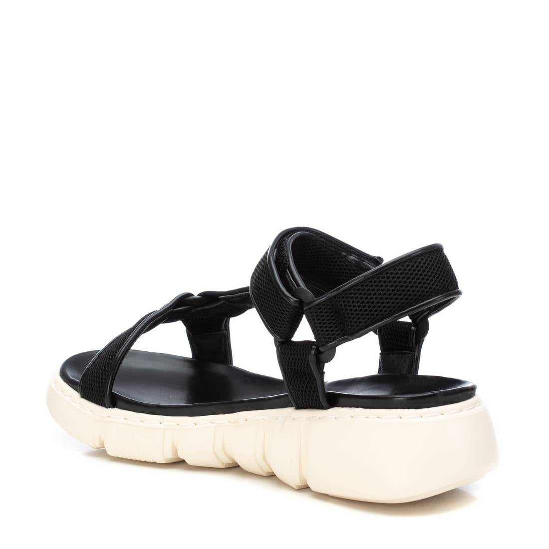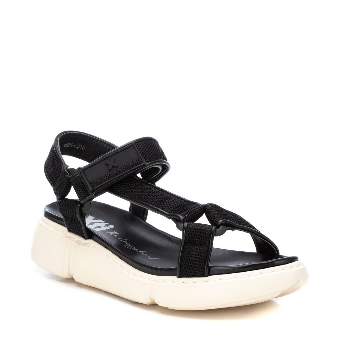 Sandalia de mujer, de la marca Xti. Fabricada en material textil. Cierre mediante tiras adherentes. Suela de goma antideslizante. Este modelo ha obtenido el certificado vegano por la organización mundial PETA (Organización de los derechos de los animales).
