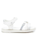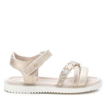 Sandalia de niña, de la marca Xti Kids. Fabricada en material que imita la piel. Con tiras delanteras de diferentes materiales. Con pulsera de hebilla plateada para sujetar el tobillo. Cómoda planta acolchada con suela de goma antideslizante. Una sandalia que encantará a las más pequeñas de la casa. Este modelo ha obtenido el certificado vegano por la organización mundial PETA (Organización de los derechos de los animales).