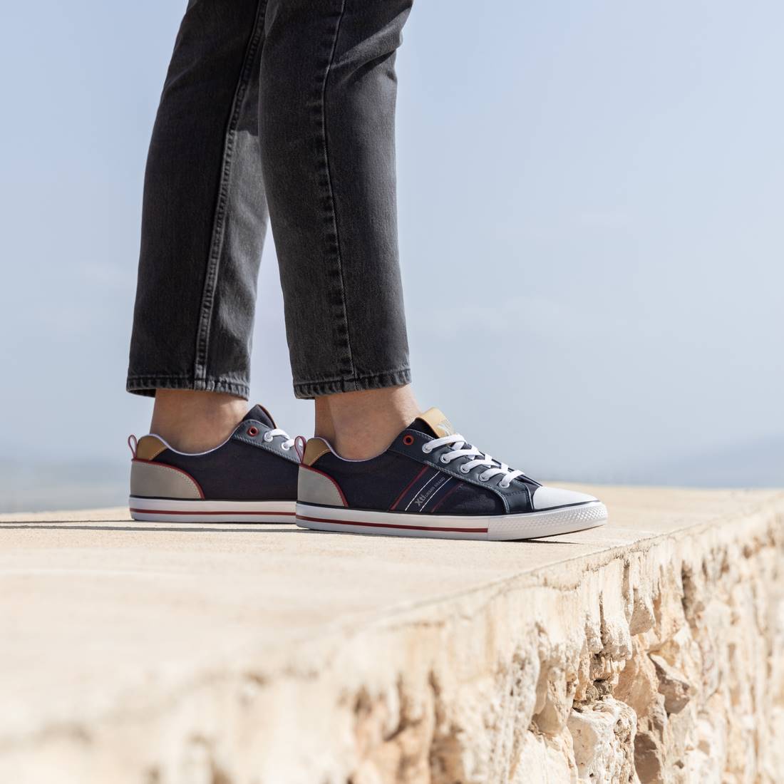 Zapatilla de hombre, de la marca Xti. Fabricada en textil combinado con material que imita la piel. Cierre mediante cordones además de tirador trasero para facilitar la puesta. Suela de goma antideslizante. Este modelo ha obtenido el certificado vegano por la organización mundial PETA (Organización de los derechos de los animales).
