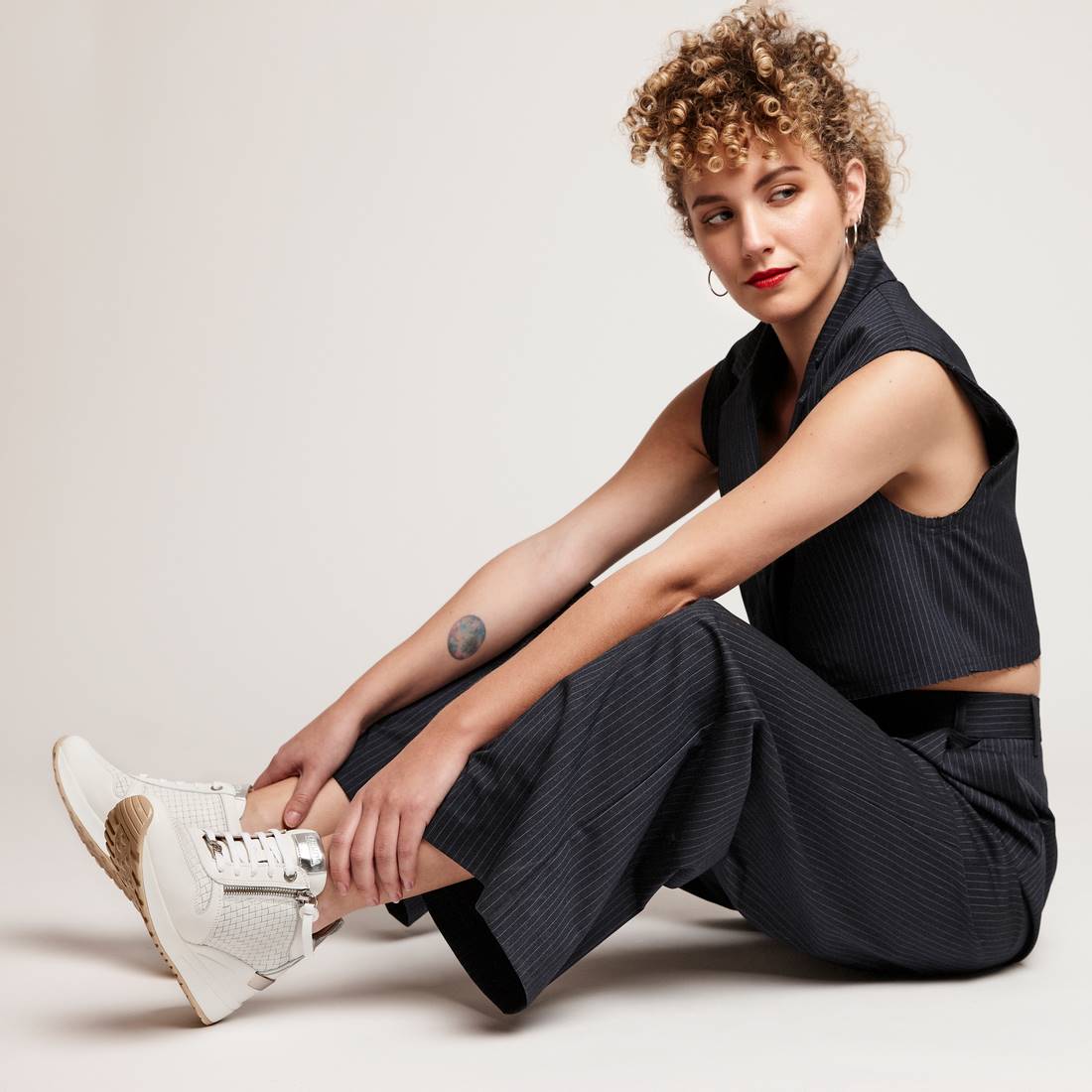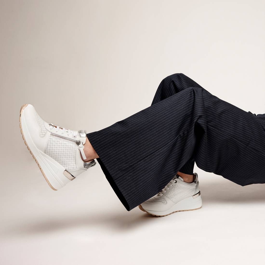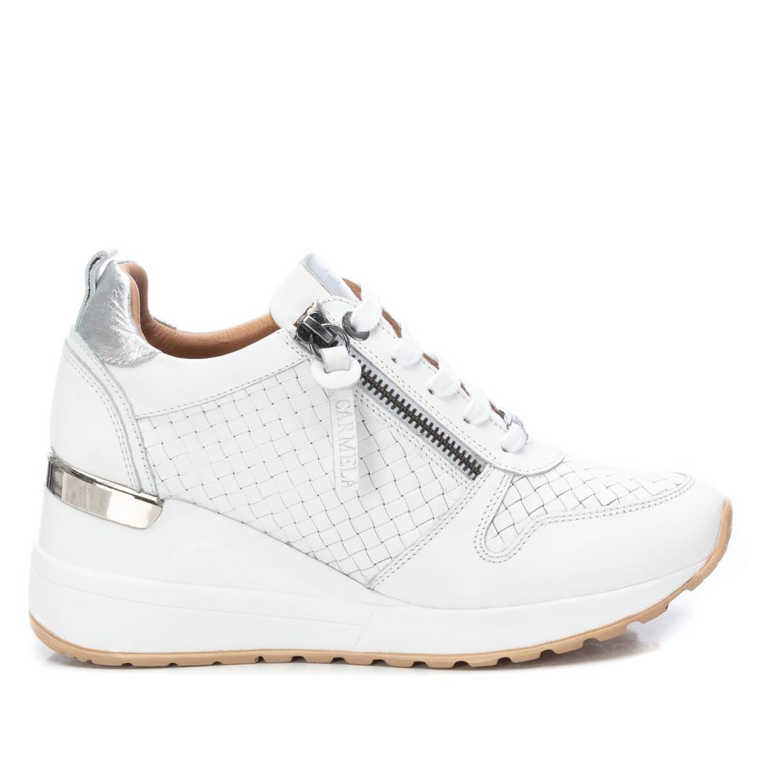 Zapatilla de mujer, de la marca Carmela. Fabricada en piel de alta calidad con picados decorativos. Cierre mediante cremallera lateral y cordones ajustables. Cuña de 7 cm con suela antideslizante. Un modelo ideal para quien quiere ir cómoda con un poco de altura.