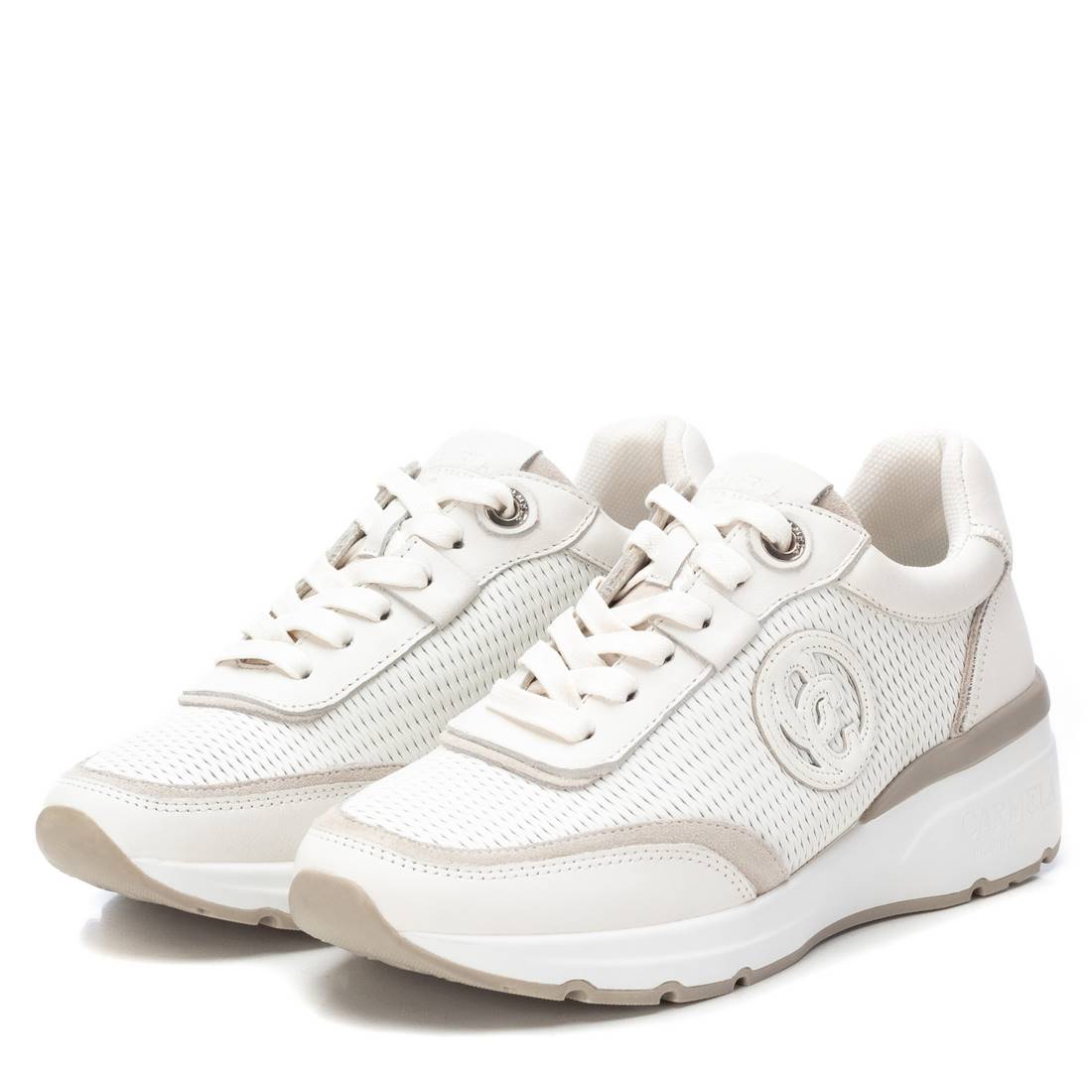 Zapatilla de mujer, de la marca Carmela. Fabricada en piel de alta calidad con acabado metalizado. Cierre mediante cordones. Suela volumen dentada de goma antideslizante. Este modelo será el protagonista de tus looks.