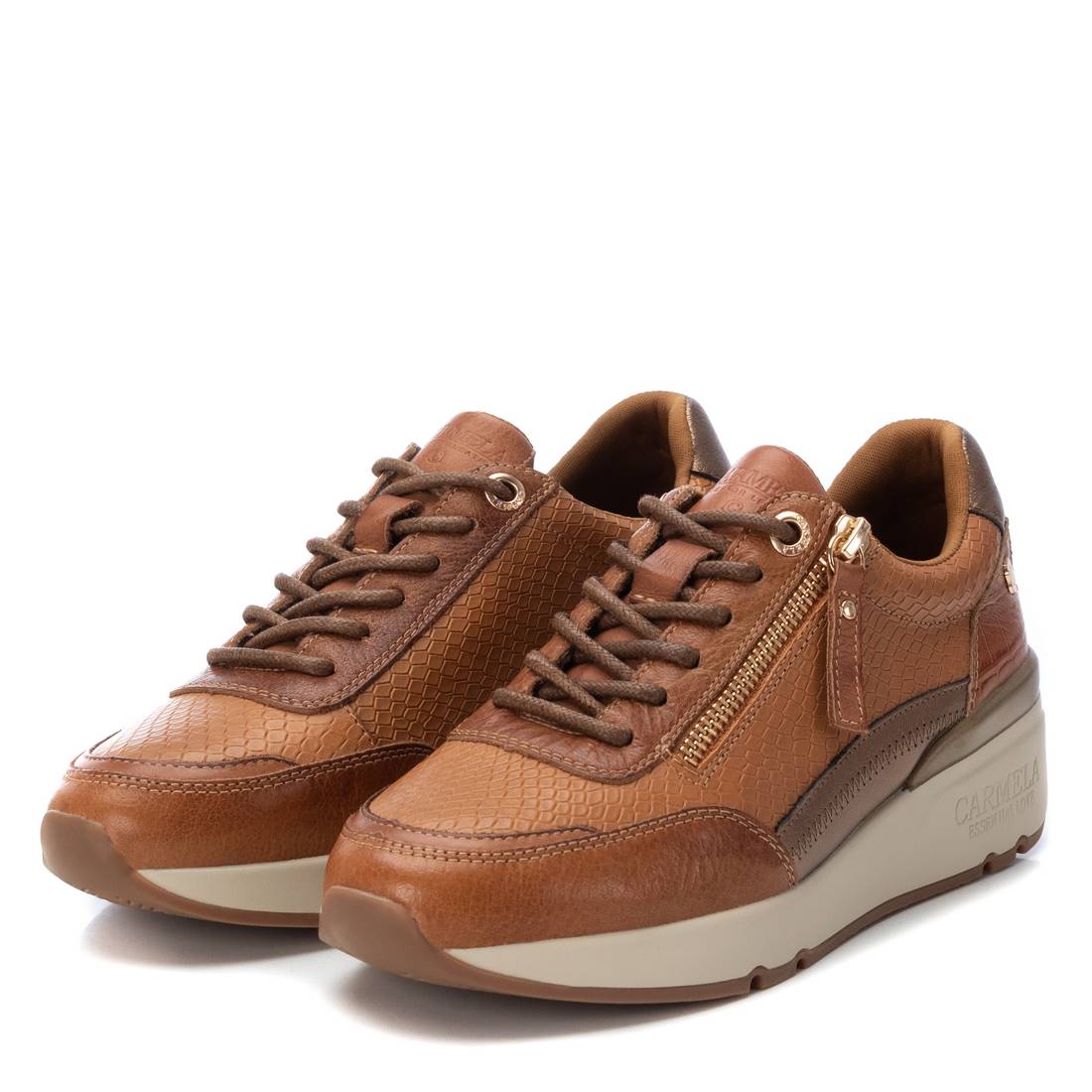 Zapatilla de mujer, de la marca Carmela. Fabricada en piel con diferentes acabados. Cierre mediante cremallera lateral y cordones para un buen ajuste. Suela volumen de goma antideslizante.