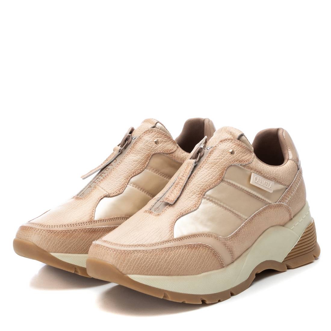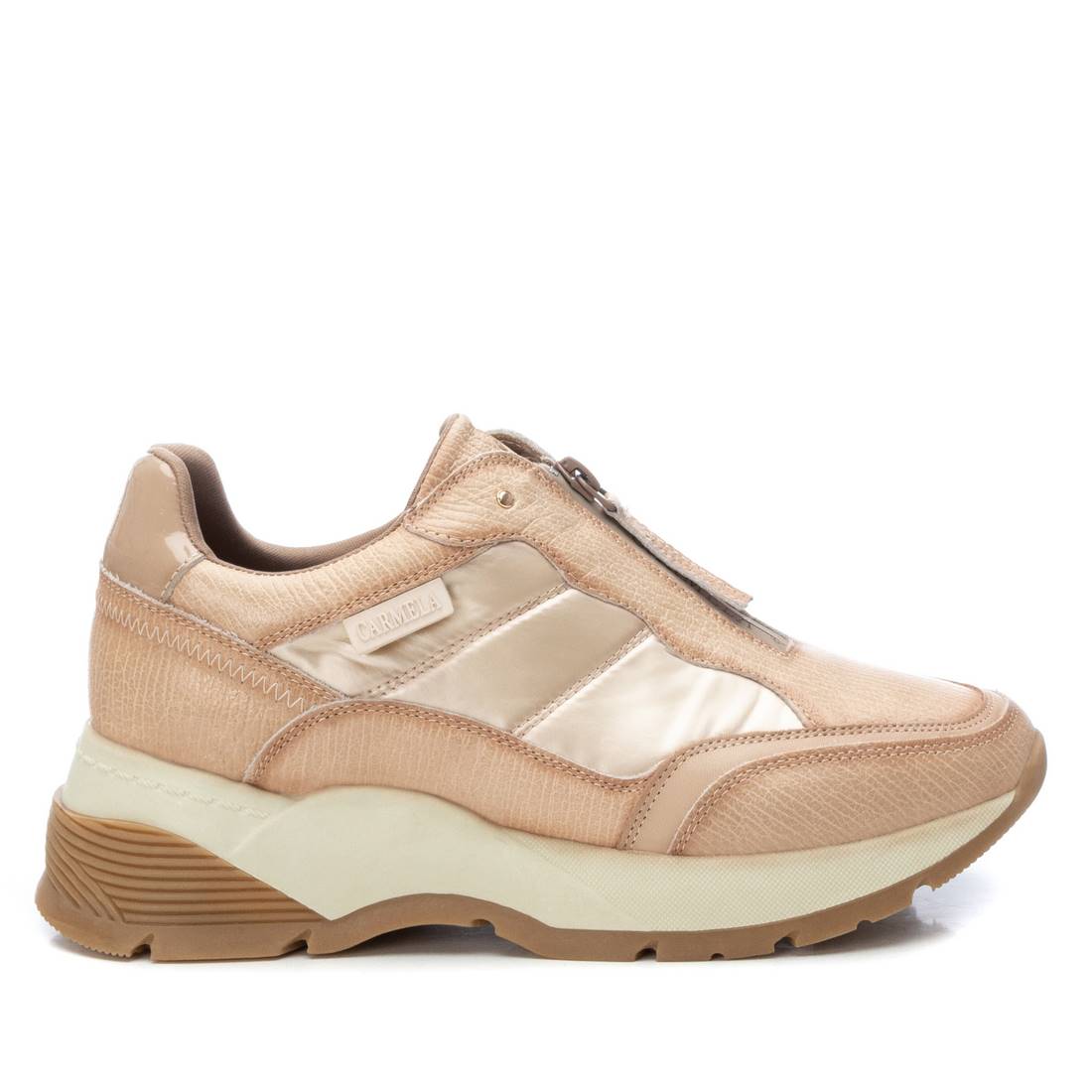 Zapatilla de mujer, de la marca Carmela. Fabricada en piel y nylon metalizado. Cierre mediante cremallera frontal. Suela con volumen de goma antideslizante. Un modelo perfecto para tus looks más casuales.
