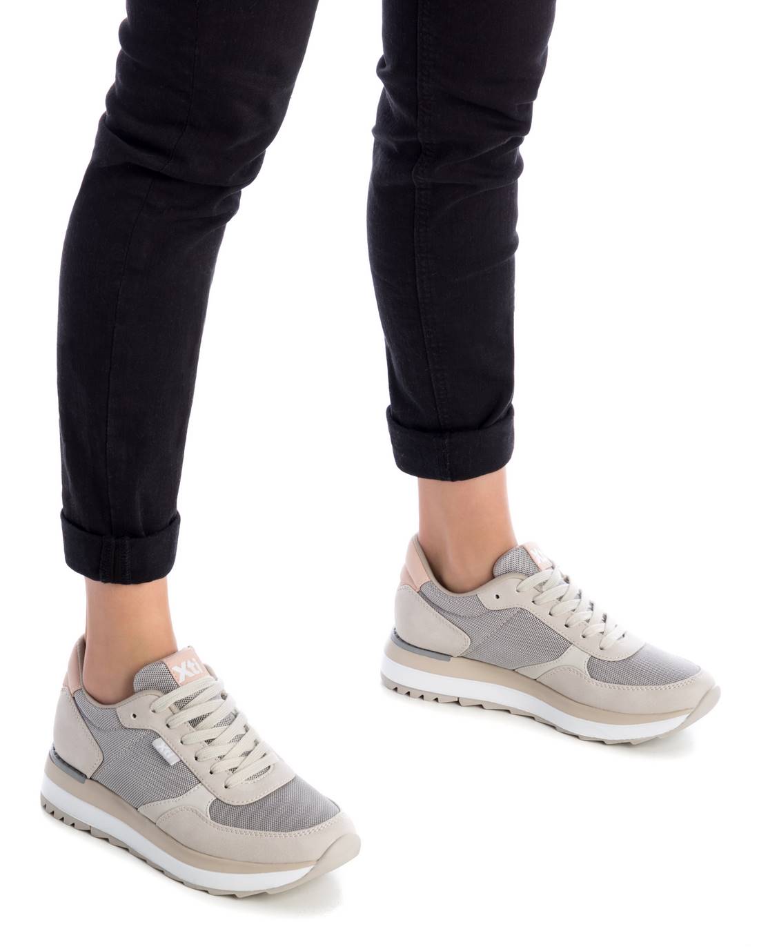 Zapatilla casual de mujer, piso de goma de 3 cm, de la marca Xti. Fabricada en textil combiando otros materiales. Suela de goma antideslizante. Muy cómoda para llevarla todos los días. Este modelo ha obtenido el certificado vegano por la organización mundial PETA (Organización de los derechos de los animales).