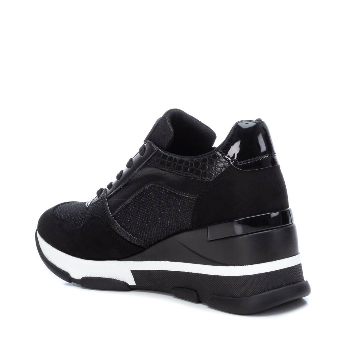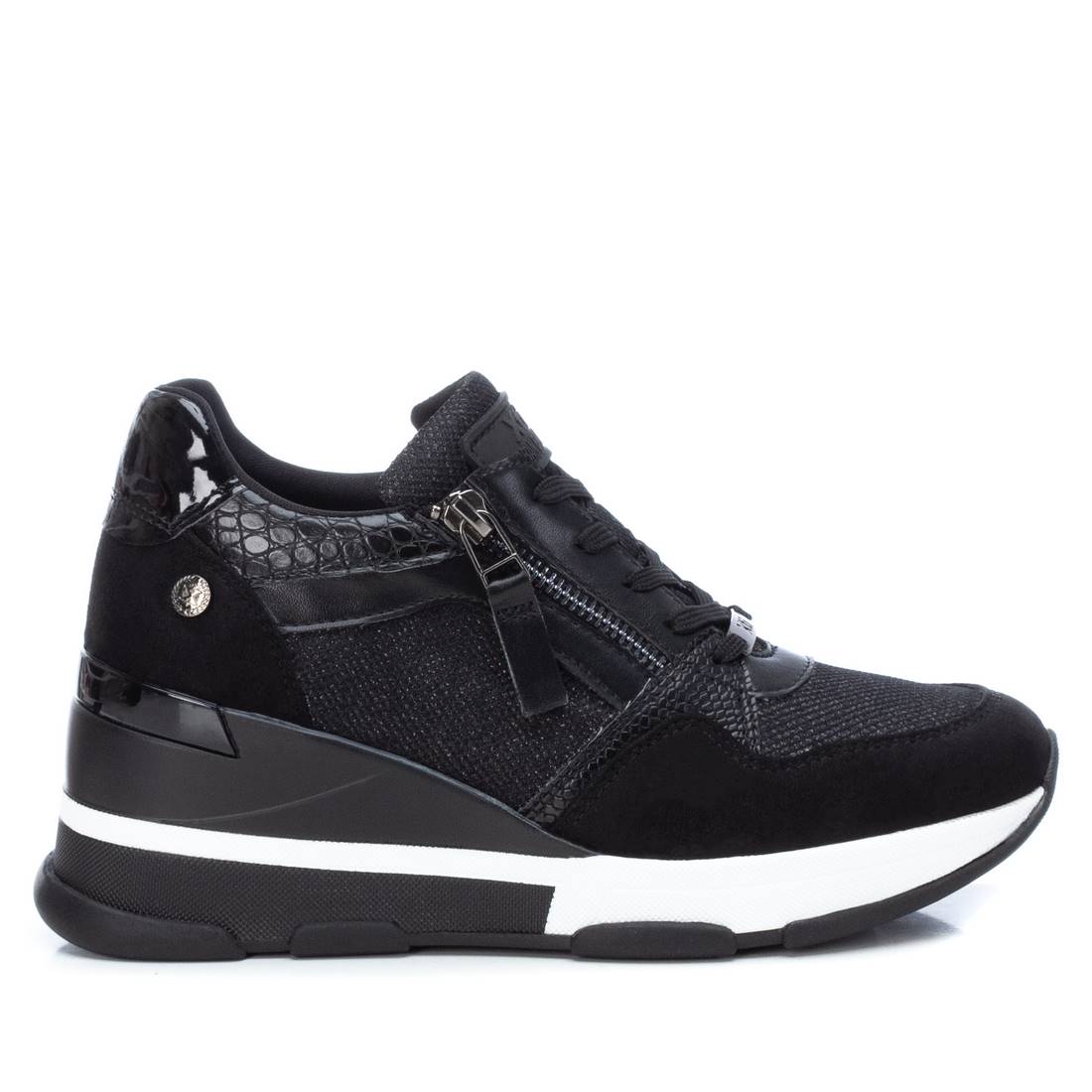 Zapatilla de mujer de la marca Xti. Fabricada en textil combinado con piezas en material que imita a la piel. Cierre de cremallera con cordones regulables. Cuña de 7 cm y suela de goma antideslizante, que hacen de esta zapatilla un básico indispensable para esta temporada. Este modelo ha obtenido el certificado vegano por la organización mundial PETA (Organización de los derechos de los animales).