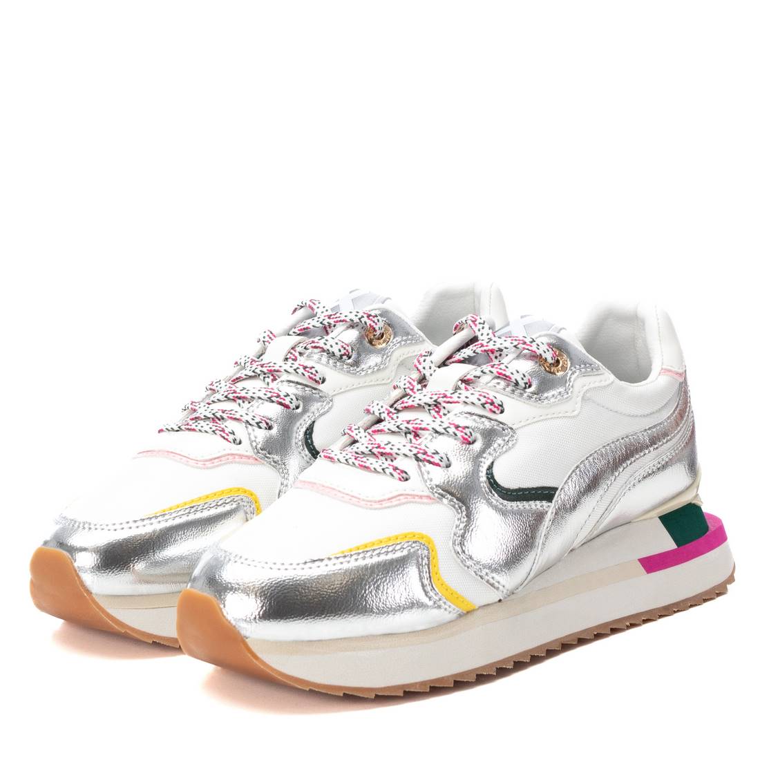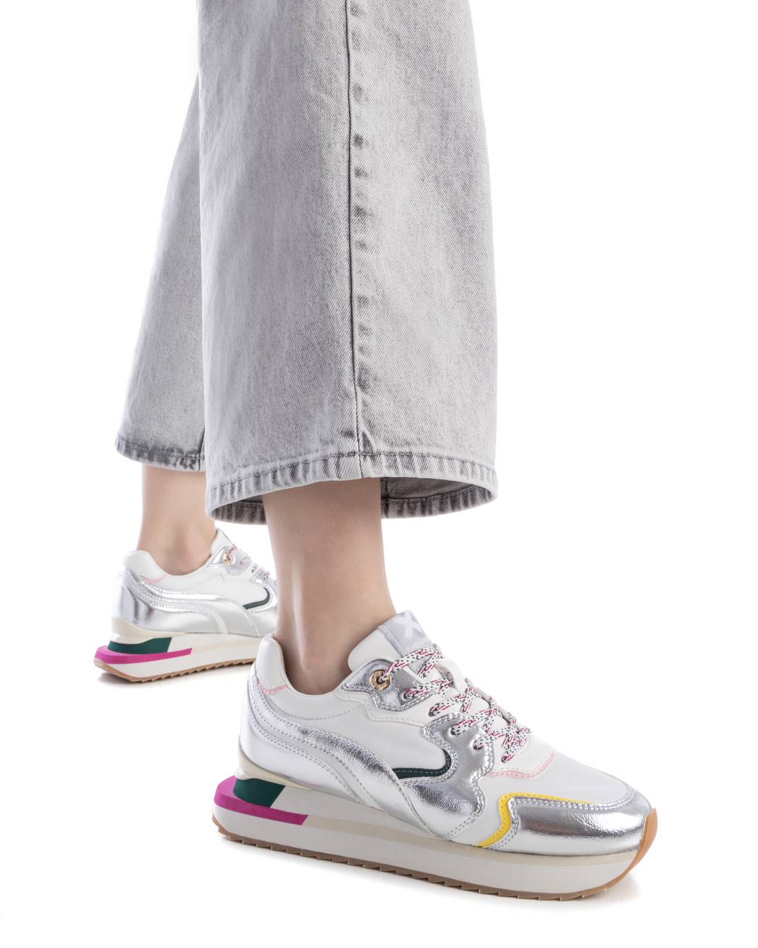 Zapatilla de mujer, de la marca Xti. Fabricadas en material metalizado que imita la piel, combinada con textil. Novedoso diseño fabricado con suela de goma antideslizante. Con plantilla extraíble.